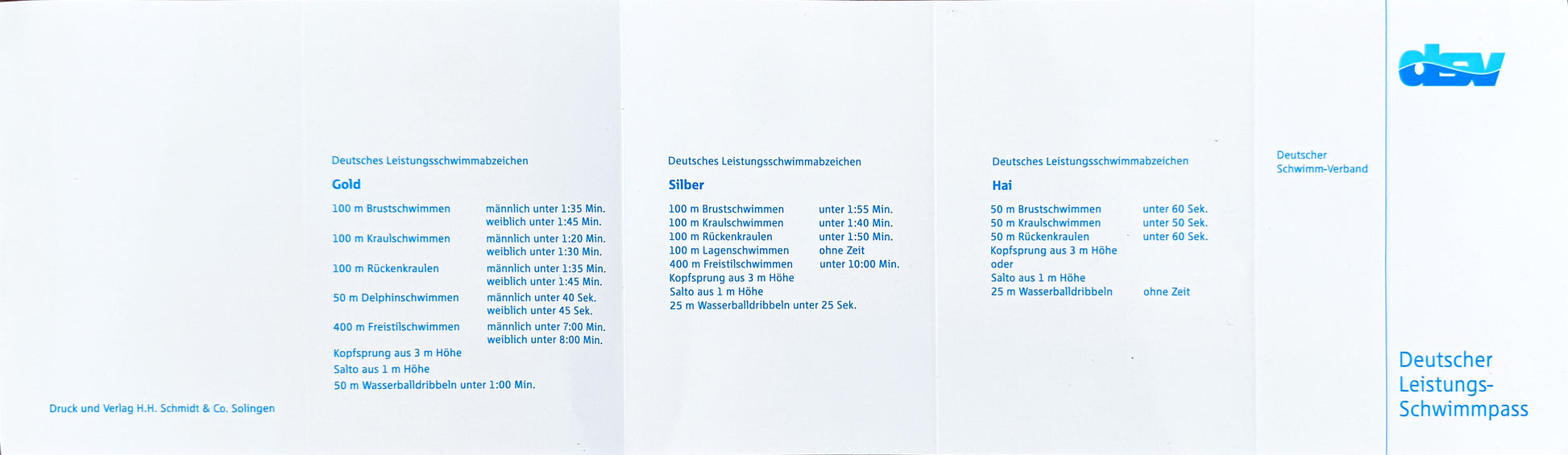 Kriterien für das Erlangen der Deutschen Leistungsschwimmabzeichen: