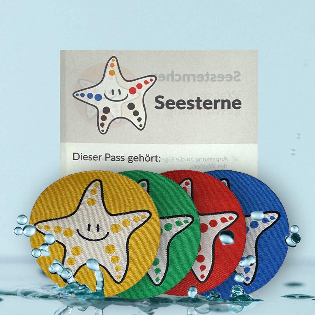 Kombi-Pack Aufbügel-Stoffabzeichen Easy-on + Ausweis Seesternchen