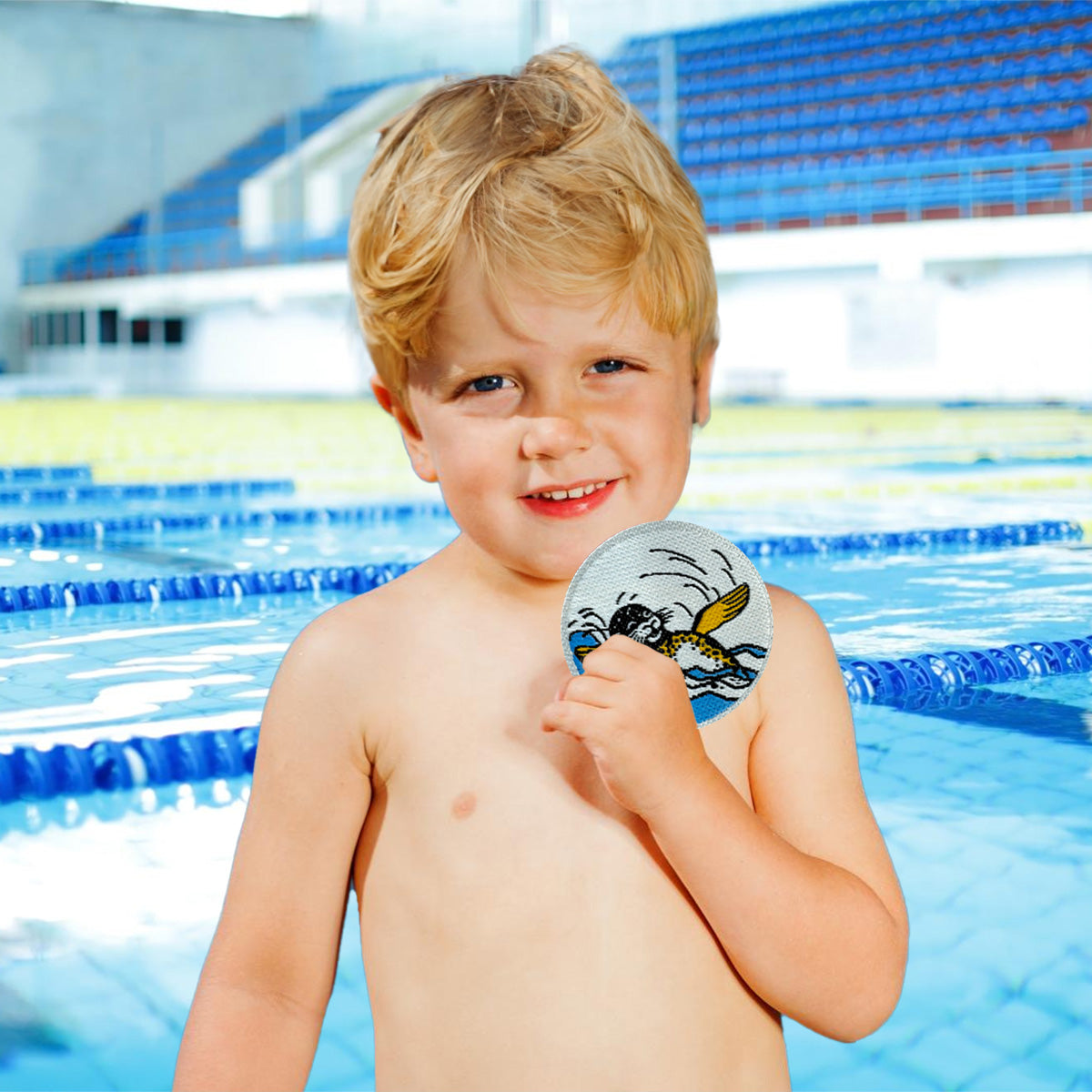 - zweimal ca. 2 m Tieftauchen von der Wasseroberfläche mit Heraufholen je eines kleinen Gegenstandes (z.B. kleinen Tauchringen).